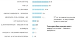 Според проучването БСП би получила 16,%, а "Демократична България" – 12,5%. Петото място остава за ДПС с 9,5% подкрепа, а шестото е за "Изправи се! Мутри вън!" с 5,4% подкрепа.