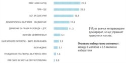 Според проучването БСП би получила 16,%, а "Демократична България" – 12,5%. Петото място остава за ДПС с 9,5% подкрепа, а шестото е за "Изправи се! Мутри вън!" с 5,4% подкрепа.