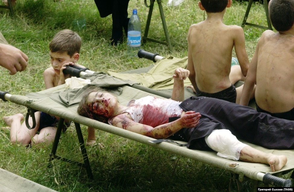 Следват и други нападения извън Чечня. На 1 септември 2004 г. нападатели превземат училище в Северна Осетия, която граничи с Чечня. Над 1100 ученици, родители и учители са взети за заложници. Настояването отново е за изтегляне от Чечня. Руските специални сили започват спасителна операция, която също получава много критики. Три дни по-късно всичко приключва с 334 жертви, сред които 186 деца.