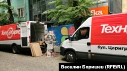 Да се върнем обаче на снимката: остатъците от двете фалирали дружества (и на Божков, и на свързваното с Пеевски) се товарят в бусове на „Техномаркет“.