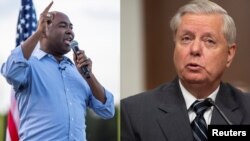 В Южна Каролина влиятелният републикански сенатор Линдзи Греъм (вдясно), който се смята за редовен съветник на президента, е изправен пред силен опонент. Джейми Харисън е бивш лобист и председател на Демократическата партия.