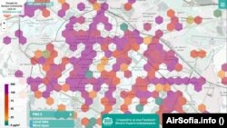 Повече от половината сензори на AirSofia.info около 18 часа на 26 ноември са оцветени в лилаво, което означава нива на замърсяване с фини прахови частици над 100 микрограма. Най-мръсен е въздухът в "Овча купел", "Красна поляна", "Хладилника" и още няколко квартала.