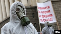 Протестиращи от няколко екологични организации излязоха на протест в сряда с искане за незабавно затваряне на фермите за норки в България. Те бяха облечени с бели костюми и противогазови маски и носеха плакати с надпис "Фермите за норки са ферми за COVID-19”.