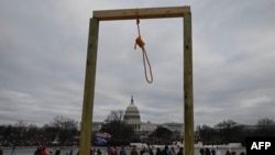 Пред сградата на Конгреса привържениците на Тръмп издигнаха и бесилка.