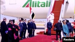 При пристигането си в Ирак Папа Франциск беше посрещнат от министър-председателя Мустафа ал Кадини