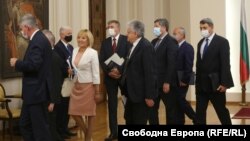 Освен членове на служебното правителство на Стефан Янев, в президентството дойдха председателите на групите на всички парламентарни сили – Тошко Йорданов от „Има такъв народ“, Десислава Атанасова от ГЕРБ, Корнелия Нинова от БСП, Христо Иванов от „Демократична България“, Мустафа Карадйъ от ДПС и Мая Манолова от „Изправи се.БГ! Ние идваме!“, както и председателката на парламента Ива Митева.
