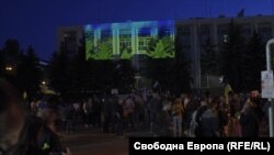 Докато преминават покрай сградите участниците в похода скандират "тук не е Москва", "червени боклуци", чуват се и освирквания.