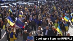 Той е сред хилядите хора, които в понеделник вечерта участваха в шествие под наслов "Поход срещу руския фашизъм" в София. То започна от президентството, премина покрай сградата на Министерството на вътрешните работи (МВР), Българското национално радио (БНР)и завърши пред посолството на Русия.