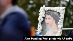 Ковчегът на кралицата, който в последните 4 дни беше в Уестминстър хол, където стотици хиляди хора чакаха на огромни опашки, за да й отдадат почит, беше транспортиран до Уестминстърското абатство с оръдеен лафает, под звуците на гайди.