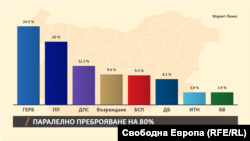 Паралелно преброяване на „Маркет линкс“/бТВ при 80% обработена извадка