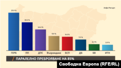 Паралелно преброяване на „Алфа рисърч“/БНТ при 85% обработена извадка