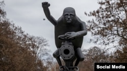 Според организаторите скулптурата символизира позицията на Русия, която нахлу в Украйна и използва природните ресурси, включително газа, за да прокарва геополитическите си интереси.