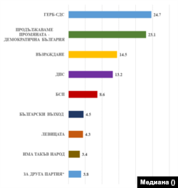 ГЕРБ-СДС води пред ПП-ДБ, "Възраждане" изпреварва ДПС, според "Медиана"