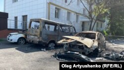 Опожарените коли отпред са последица от обстрел от предния ден.