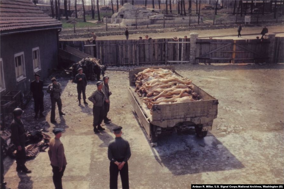 Сега американските войници са довели около 1000 от жителите на близкия град Ваймар да видят телата на затворниците. На маса американските военни патолози са изложили и намереното в една от лабораториите в лагера – простреляно човешко сърце във формалин, парчета татуирана човешка кожа, абажур за лампа, направен от човешка кожа. Кожа на затворници от лагера.