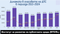 Мандатите на ДПС логично следват динамиката на гласовете през годините и варират между 26 (през 2017 г.) и 47 сега, пише Институтът за развитие на публичната страна в анализ, озаглавен "ДПС се оказа големият победител на изборите".