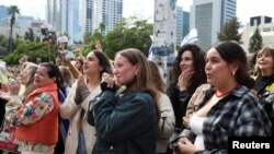 По улиците на Тел Авив стотици хора се събраха, за да отпразнуват връщането на четирите заложнички.