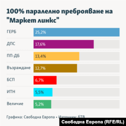 Данните на "Маркет Линкс" при 100% паралелно преброяване също сочат, че партия "Величие" ще е над бариерата и че ПП-ДБ изпреварва "Възраждане":