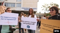 Част от протестиращите носеха плакати с надписи "Аз вярвам на лекарите в "Майчин дом", "Не гонете добрите лекари с лъжи", "За пари и слава ли го правите" и други.