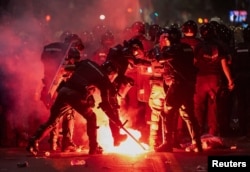 Полицейски части за борба с безредиците използваха лютив спрей и сълзотворен газ срещу антиправителствени протестиращи в Белград, които настояват за край на дългогодишното управление на президента Александър Вучич и нови избори. Успоредно се проведе и контрадемонстрация в защита на управлението.